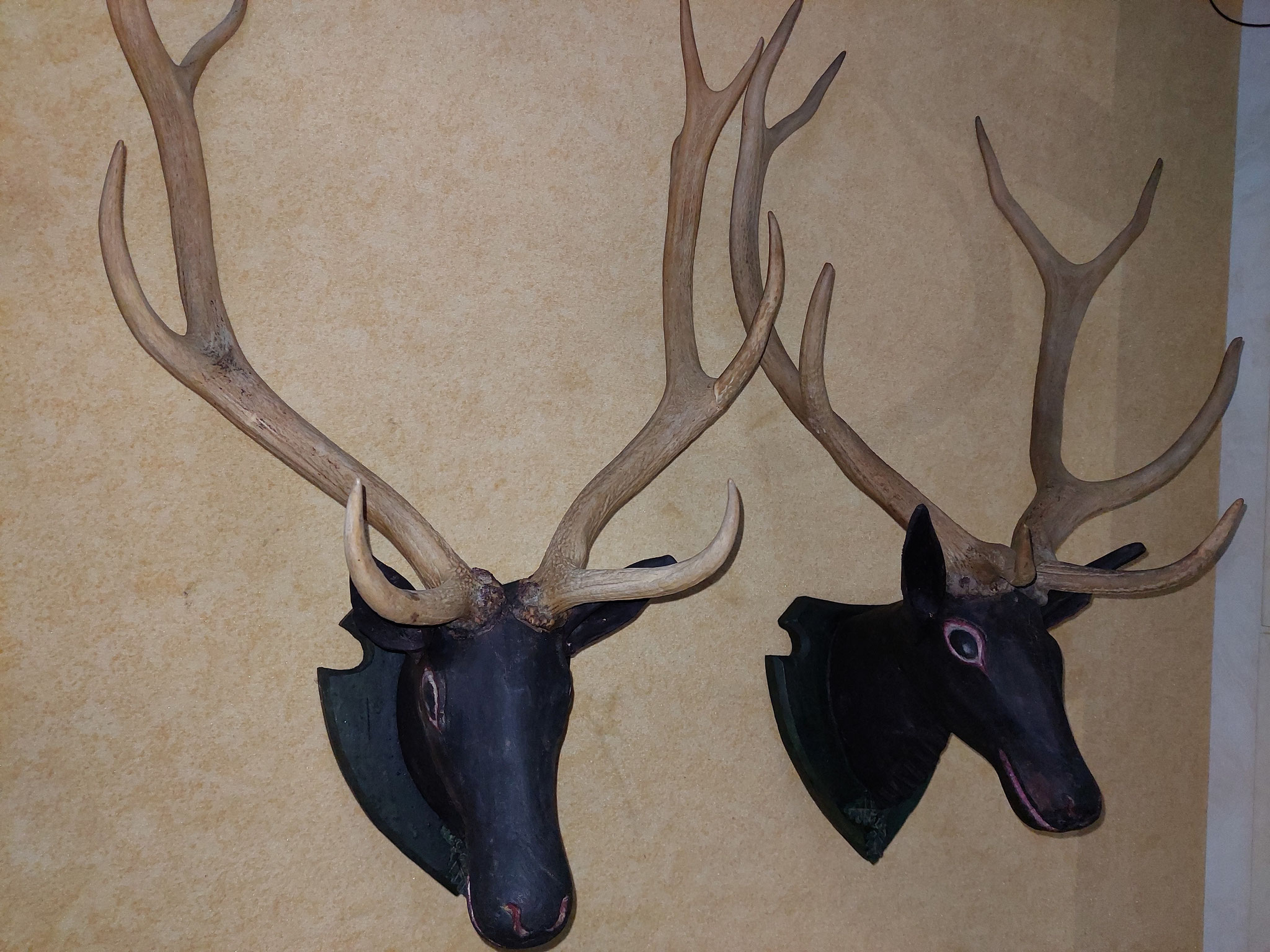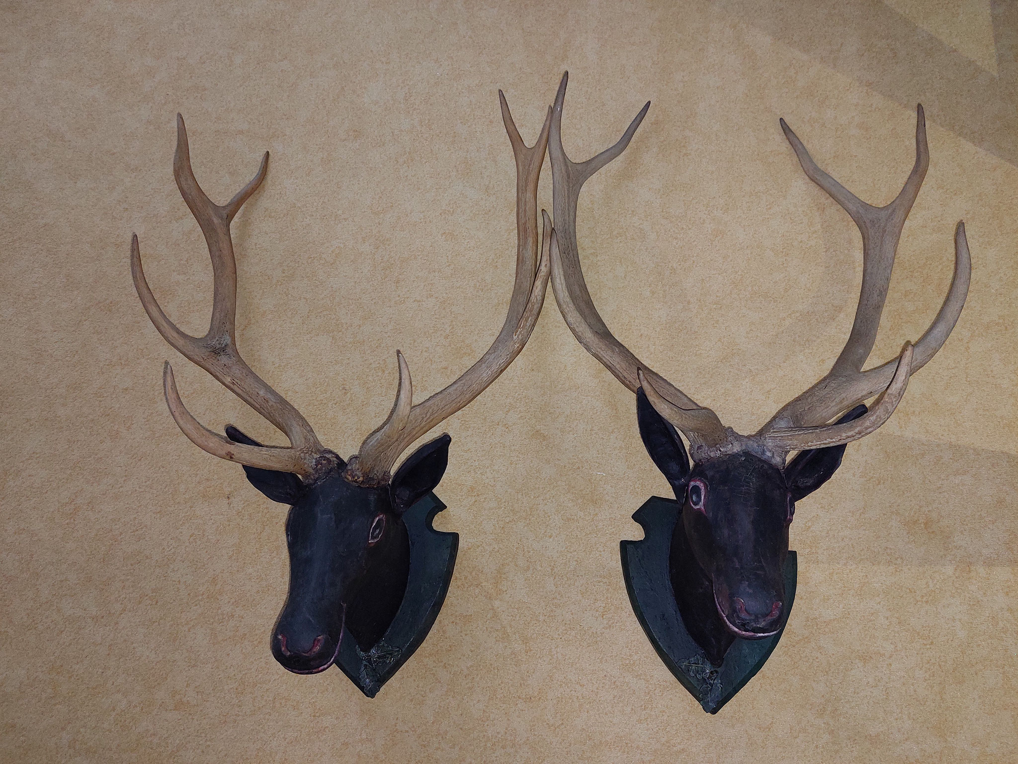 Paar geschnitzte Hirsch-Häupter aus dem Barock