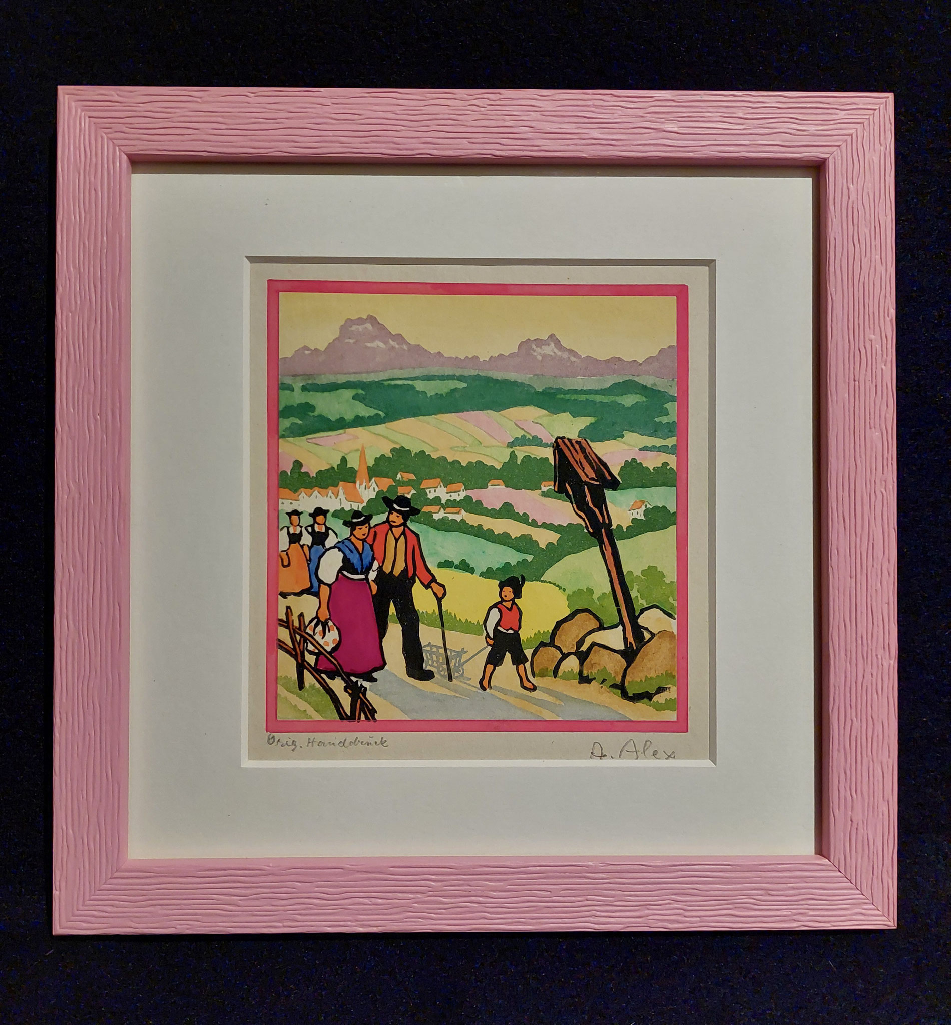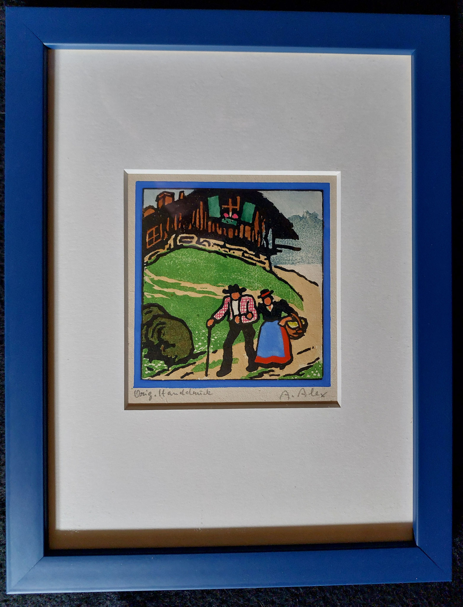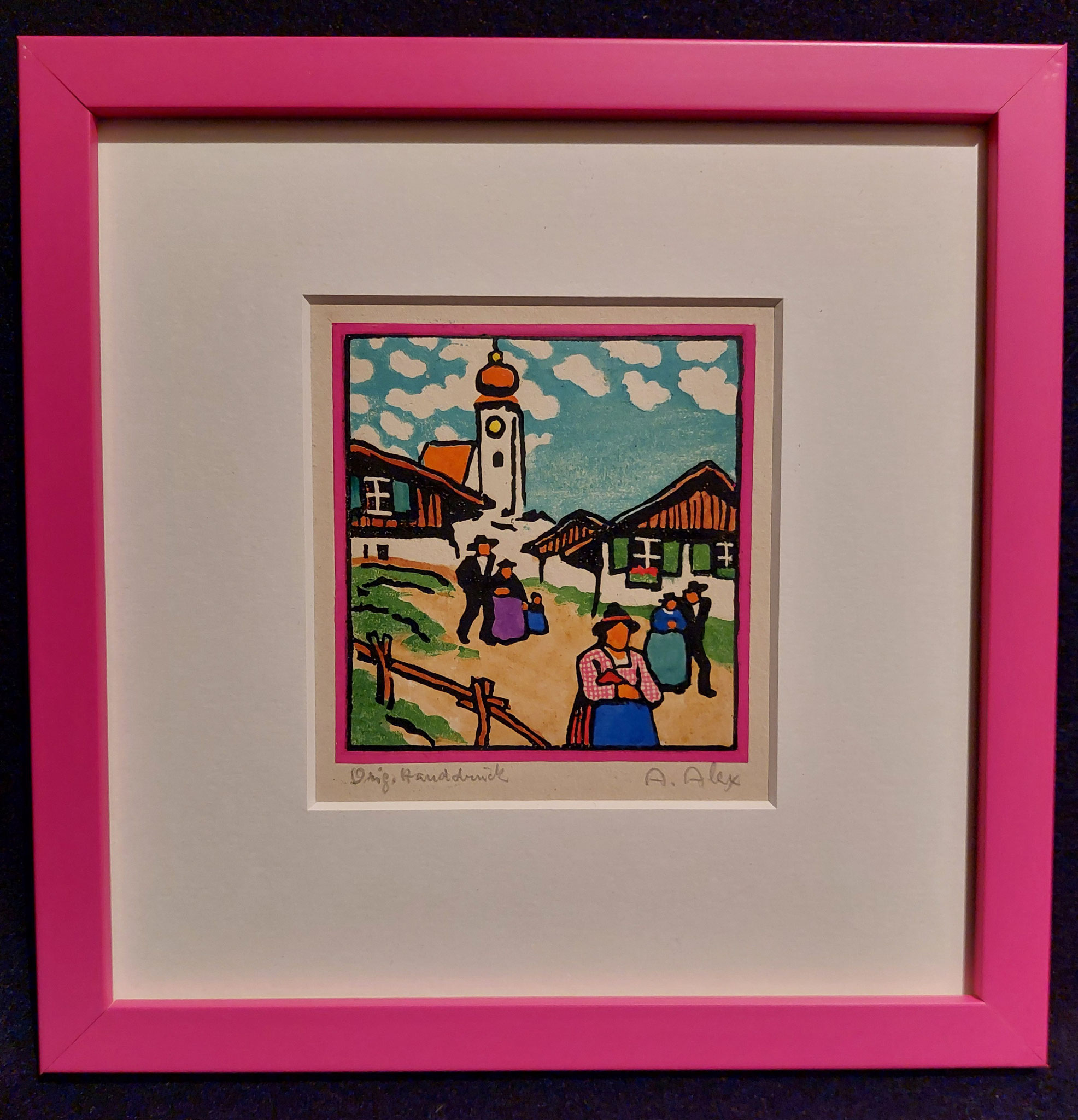 Drei Farbholzschnitte von Tiroler Dorfszenen